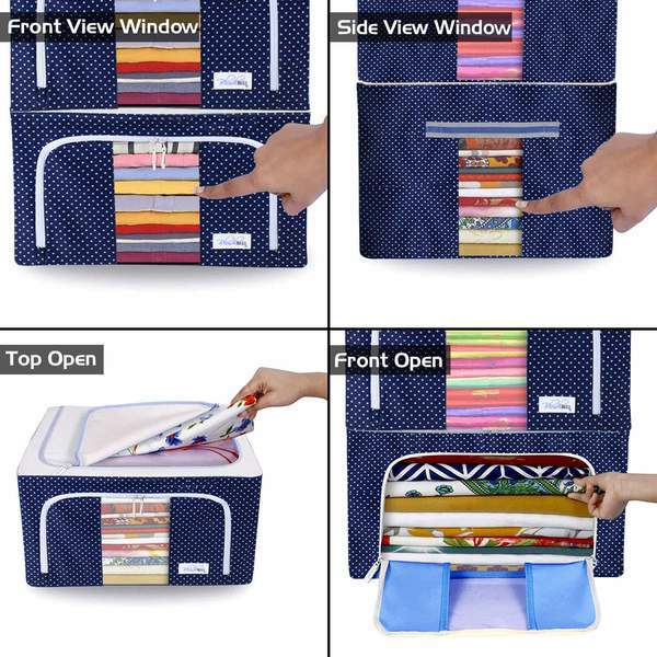 With their sturdy steel frame construction, these clothes organizers for closets are strong and stackable. The extra front zipper allows you to remove the contents without actually lifting the top box. These boxes are designed to organize your closet in a better way.