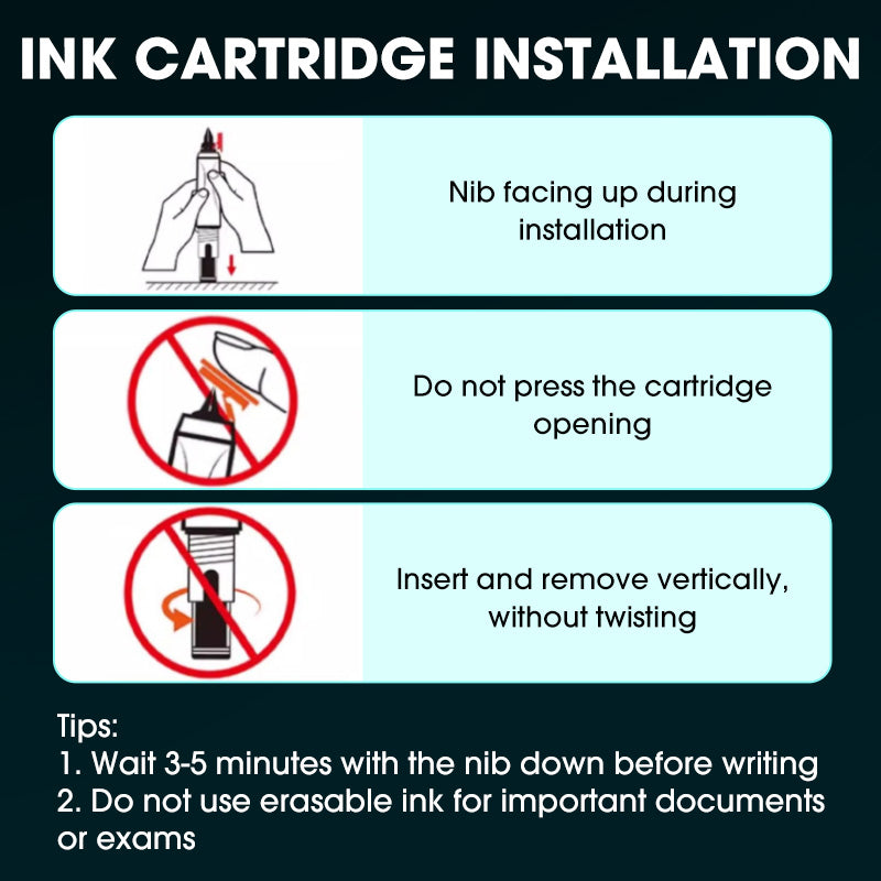 5 REPLACEABLE INK CARTRIDGES: Comes with five extra ink cartridges, allowing for long-lasting use without the need for frequent refills. Perfect for students, professionals, and writers.