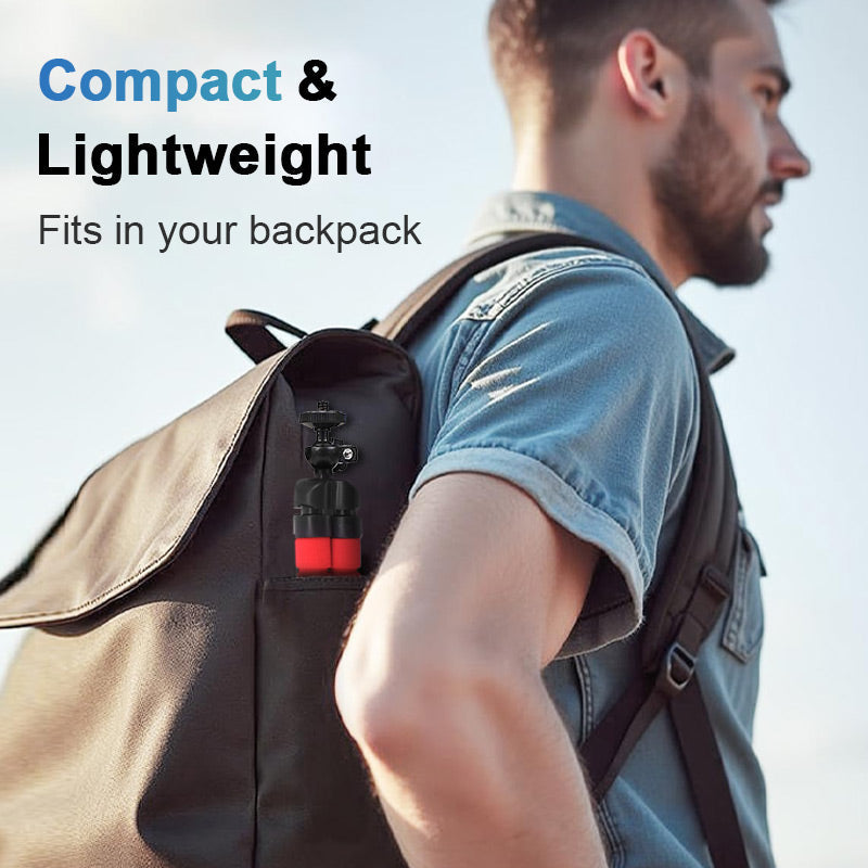 The compact flexible legs can be folded into various shapes and attached to objects. Lightweight and portable, suitable for various types of indoor and outdoor activities and for taking live photos.