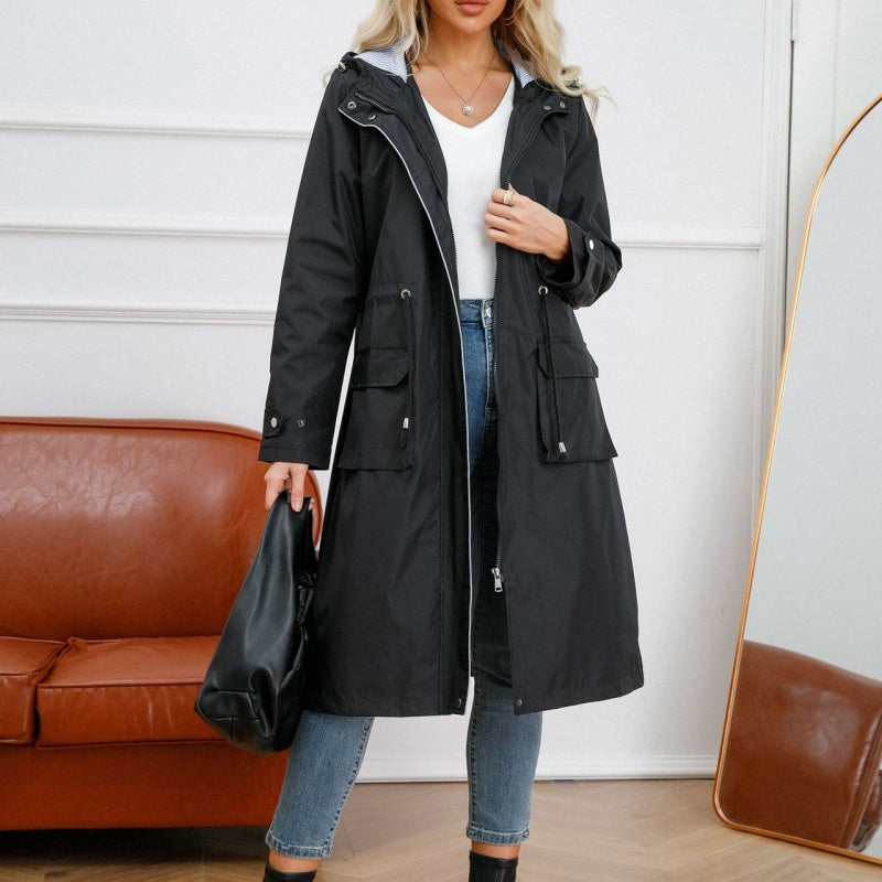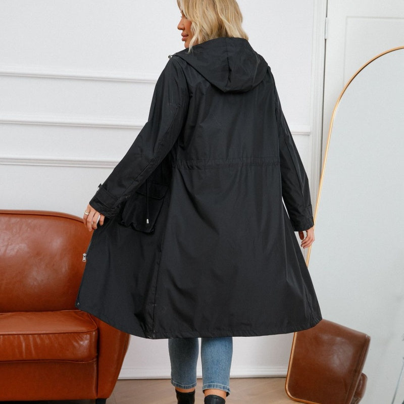 Women's Long Casual Splash-proof Hooded Windbreaker Jacket