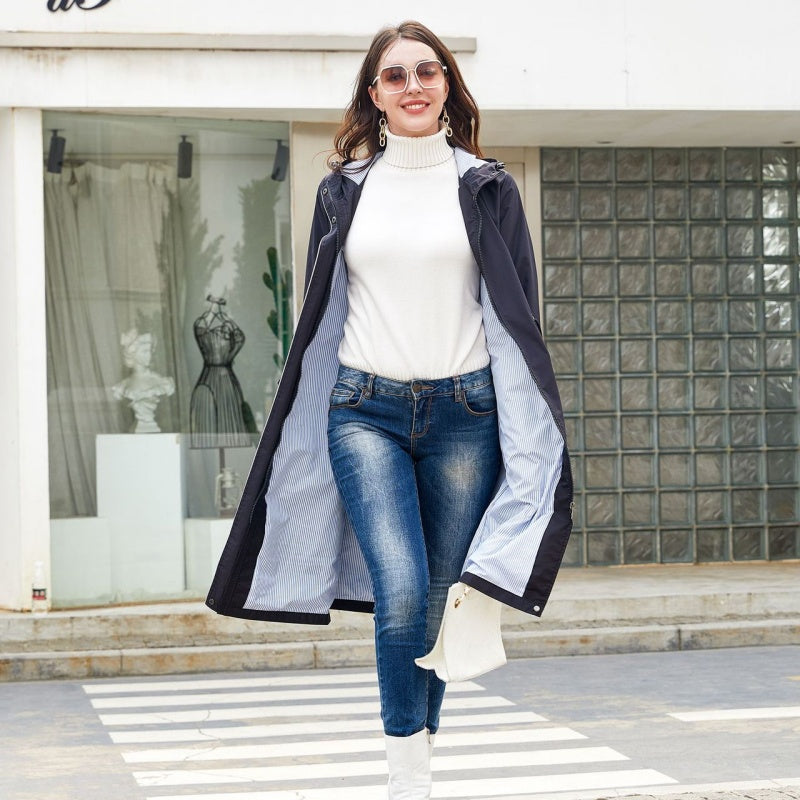 Package Includes: 1 * Women's Long Casual Splashproof Hooded Windbreaker Jacket